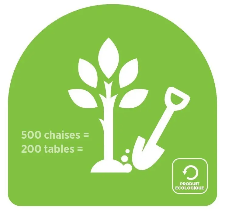 Sinds 3 jaar zijn we betrokken bij een project (Sylva Nova) dat bomen herplant in de regio Luik dankzij onze verkoop van tafels en stoelen: