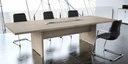 De hoogte van bureaus en vergadertafels is 74cm met verstelvijzels.