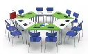 Deze werktafel kan worden gebruikt als centraal werkblad, omdat hij geen opstaande rand heeft. Een in hoogte verstelbare onderplank maakt het gemakkelijk om voorwerpen van verschillende afmetingen op te bergen.